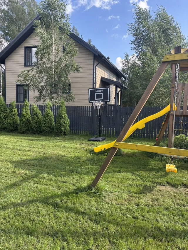 Сдается дом у Коркинского озера .4 спальня , большая гостиная , 2 санузла , зона отдыха и барбекю , детская и спортивная площадки, баня с вениками и подогреваемая купель с аэромассажем Баня и купель 8000 безлимит