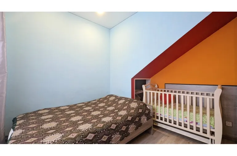 На втором этаже большой санузел с джакузи и 3 просторные жилые комнаты. С двуспальными кроватями и кресло кроватями. Детская кроватка, стульчик для кормления, детская игровая зона с игрушками. На всей территории бесшовный wi-fi. фоновая музыка на всей территории.