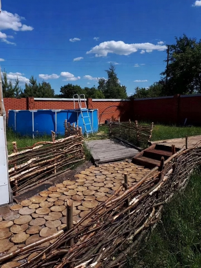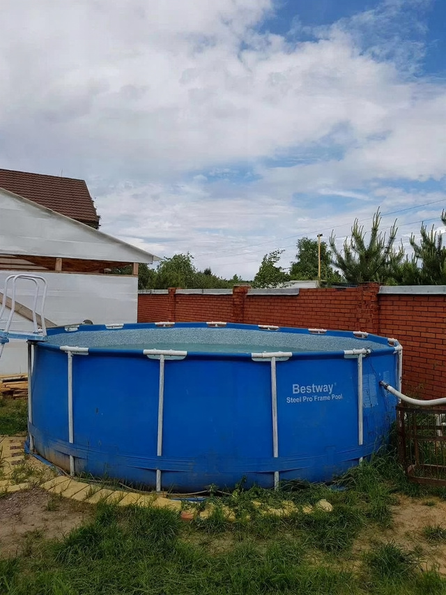 - Бассейн летом.