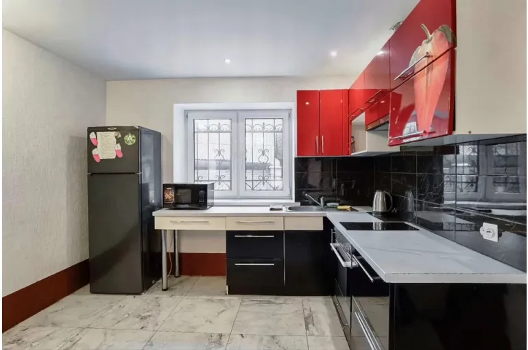 - Гостиная с кухней и столом. Возможно посадить до 20 человек