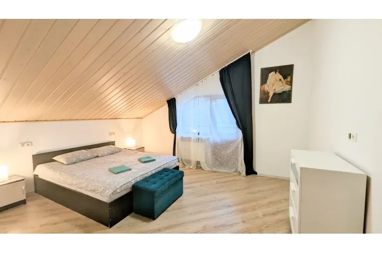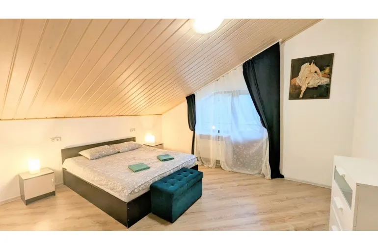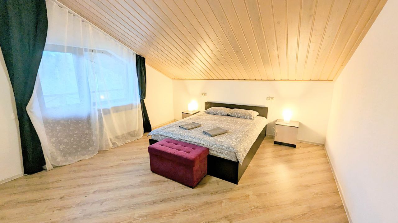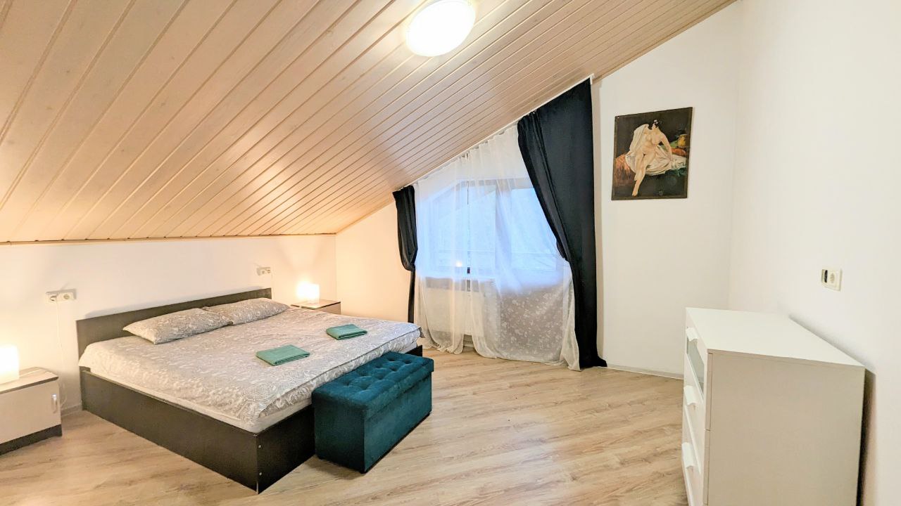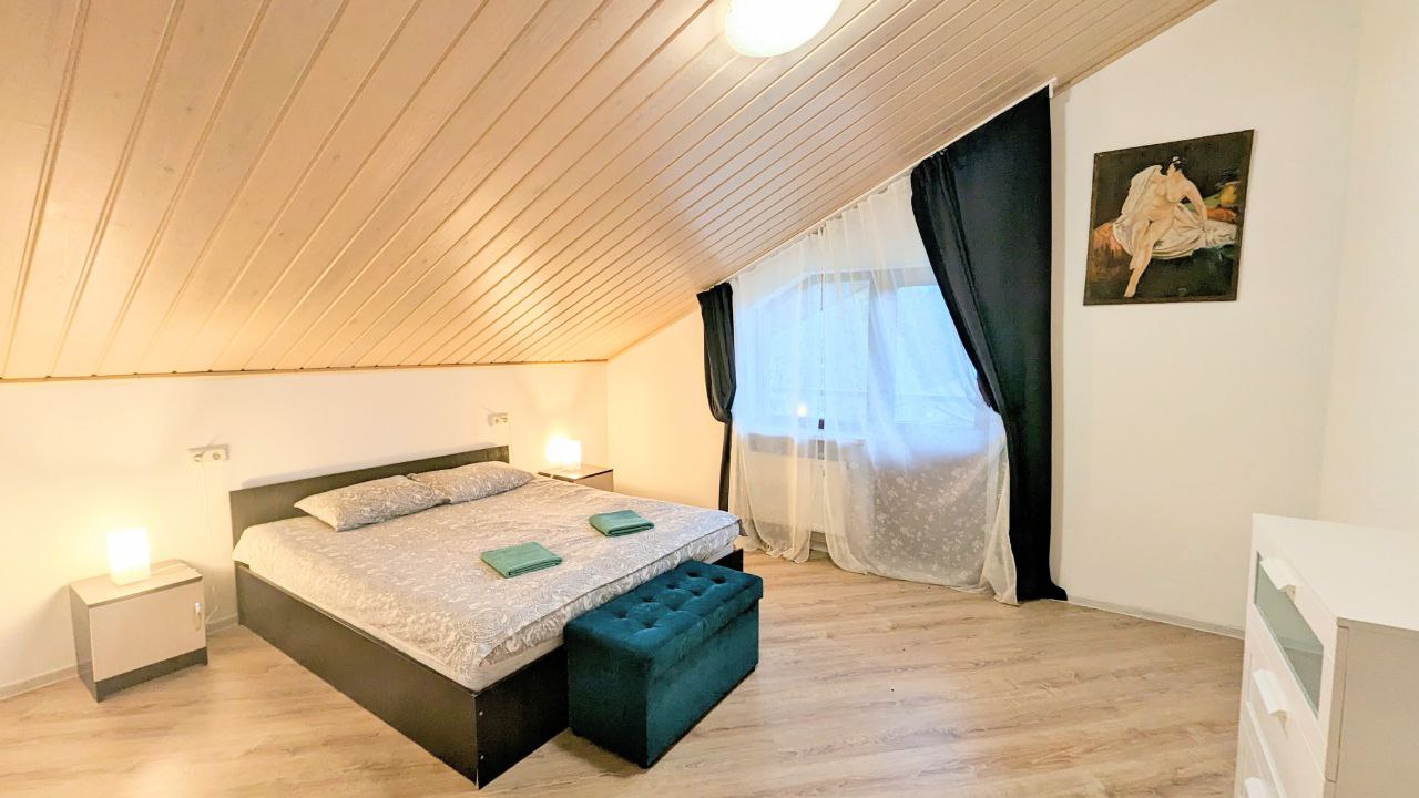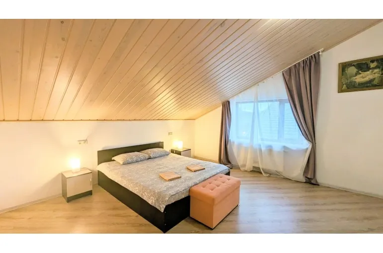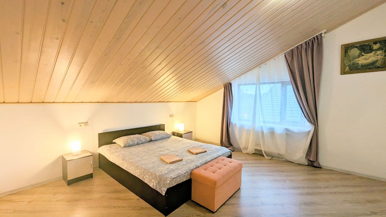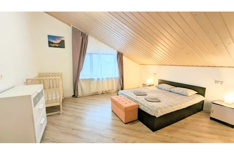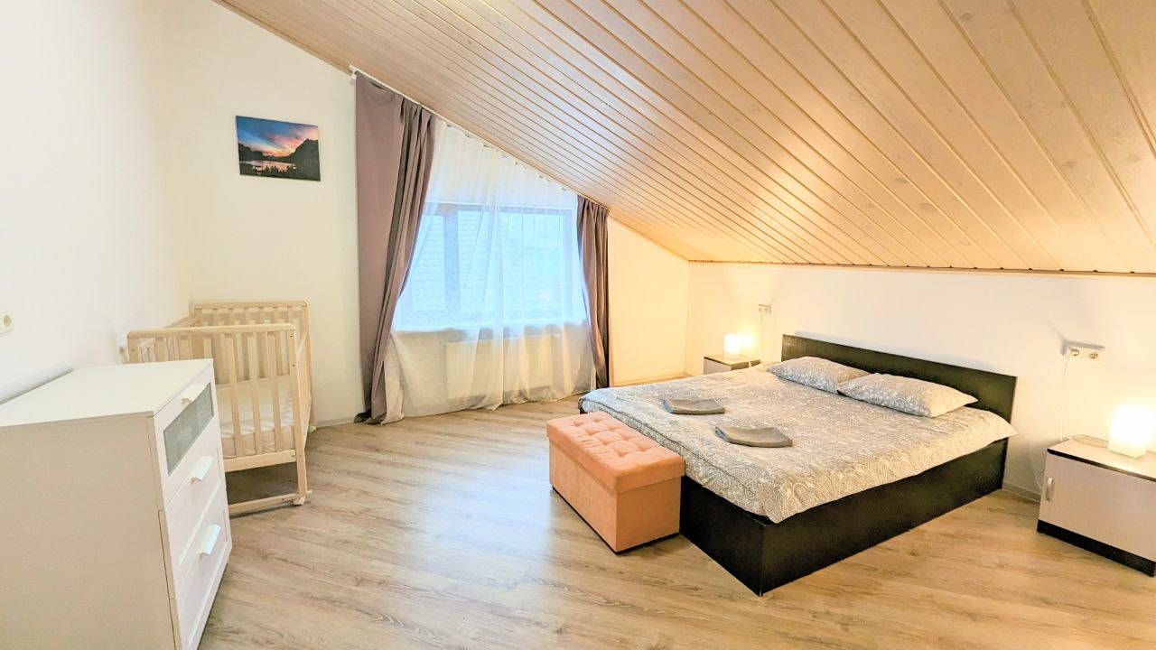 Сдаётся посуточно и долгосрочно совершенно новый коттедж для больших компаний 10-12 человек в 1 км от горнолыжного курорта Игора. Рядом с Сосново. Современная Отделка, уютные спальни и гостиная, большая сауна, кондиционер , огромный телевизор в гостиной и на 2 этаже. Барбекю, шезлонги , благоустройство, Детская площадка 5 отдельных спален. Посудомойка, большая стиральная машина, закрытый двор. На территории беседка и Детская площадка!! Постельное белье, полотенца, посуда все входит в стоимость!!