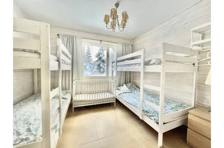 На 2 этаже - 2 спальни с 2 односпальными кроватями в каждой, санузел.