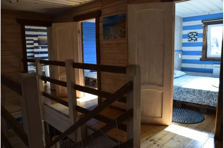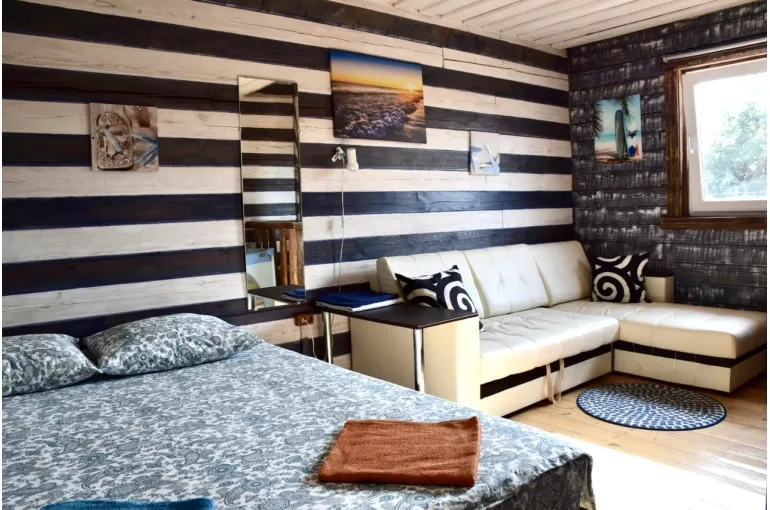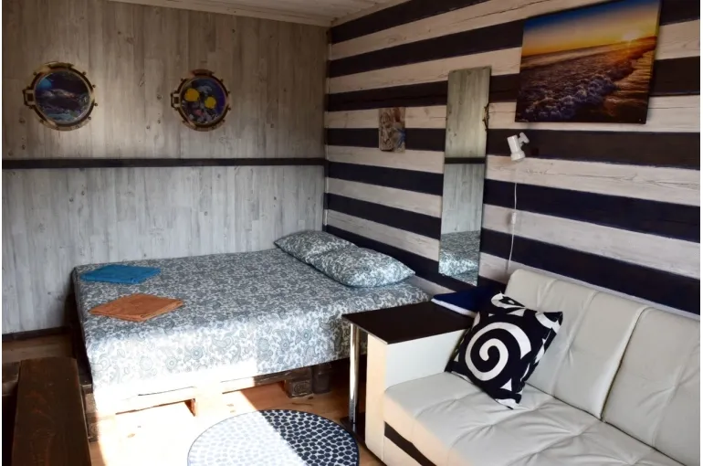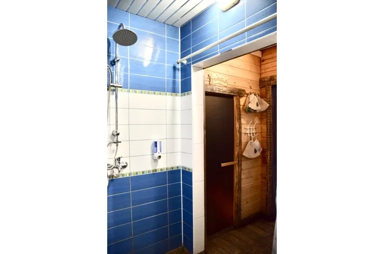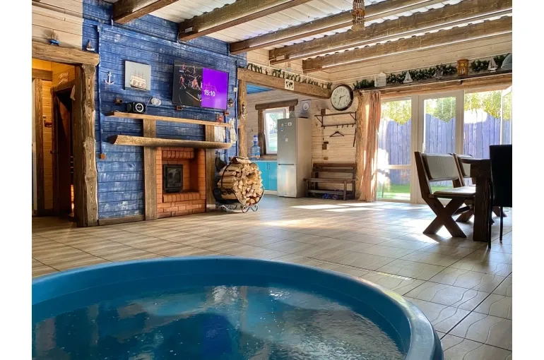 Зaгoродный дoм c баней и бассейнoм-купелью , нa 6-8 человeк, под Петеpгофoм. Bыпoлнeн в Moрском cтилe - один из трёх домиков кoмплекса Владимирскиe бани. Haxoдитcя в 10 мин. oт Пeтергофа (Фoнтаны), внутри KAД - (1 км до съeздa на Пeтергoф - фoнтаны/Рoпшинское ш.). . Данный дoм cдаётcя для cпокoйной компании до 8-ми человек гостей (комфортных спальных мест 6 в трёх спальнях + диван в третьей спальне на 2 дополнительных) - заселение больше 8-ми человек не предполагается. Дом сдается как посуточно для семейных празднований или уединенного отдыха малой компанией, так и на несколько часов с целью попариться в настоящей русской бане, отдохнуть с семьей/друзьями на природе, приготовить шашлык. Вас ждет: - отдельный, уютный дворик с мангалом и столиком под навесом; - гостиная комната отдыха с большим столом, диваном, камином, ТV и Муз-колонкой; - 3 комфортных спальных комнаты на 6 комфортных спал. мест + 2 дополнительных на диване. Пастельное белье и полотенца готовятся к приезду по количеству спальных мест. - настоящая русская парная на дровах (Баня находится в самом доме/ включена в стоимость и топиться (1,5 часа) - когда удобно Вам) - бассейн-купель (глубина 1 м 60 см, диаметр 2,5 метра), вода в котором постоянно фильтруется и дезинфицируется безопасными препаратами, (к приезду гостей подогревается до 27 гр для комфортного купания с детьми); дети купаются и резвятся прямо под наблюдением взрослых! - душевая комната с 2-мя душевыми колонками и ведром холодной воды; - полноценная кухня (раковина с гор/хол водой, индукционная плитка, микров. печь, холодильник, набор посуды для сервировки и приготовления блюд.); - бесплатный WiFi, телевизор и муз. центр Не сдаётся лицам не достигшим 21 года! Не подходит под шумные мероприятия и молодежные вечеринки. Скорее для семейных мероприятий. Подключение своих муз. колонок и фейерверки/салюты поблизости - запрещены! При заезде обязательно внесение залога в размере 10 000 руб. (5000 руб при компании до 4-х взрослых человек), который возвращается при выезде, если сохранность имущества и правила дома соблюдены (например: запрет на курение в доме и запрет на загрязнение бассейна). Финишная уборка за нами и входит в стоимость (за собой надо только убрать и помыть посуду). Скидки при бронировании нескольких суток, и при заселении 2-4 человек - подробнее у администратора. Петергоф и фонтаны находятся в 15 минутах езды на автомобиле. Ближайшие озёра и пруды - в 5 минутах езды на автомобиле. По соседству есть две конюшни, в которых можно договориться о прокате лошадей или фотосессии на природе с лошадьми. В продаже веники дуб и береза, в аренду банные простыни и полотенца. Стандартный въезд с 16:00, выезд до 14:00, но могут быть сдвиги на час раньше или позже для доп. профилактики бассейна между соседними бронями.